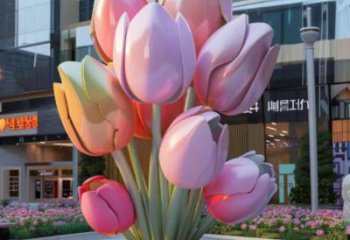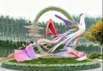 造型極具象征意義,以飄揚的紅色旗幟為主體,搭配金色五角星與黨徽,視覺沖擊力強,紅色與金色的色彩搭配莊重且富有感染力;其二,工藝融合性突出,結合了不銹鋼的金屬光澤感與石雕的厚重質感,在材質碰撞中呈現出獨特的藝術效果,讓雕塑既有現代工藝的精致,又有傳統石雕的沉穩;其三,空間適配性佳,置于綠地景觀環境中,與周邊樹木、草坪形成和諧的景觀層次,成為區域內的視覺焦點。該作品屬于景觀雕塑范疇,旨在以藝術形式詮釋紅色文化,將黨的精神符號具象為可觀賞、可感知的公共藝術作品,融入城市或景區的景觀體系,成為紅色文化傳播的空間載體。創作中運用不銹鋼雕塑的現代工藝特性,塑造出五角星的立體結構與旗幟的動感形態,展現出紅色精神的蓬勃張力;同時借鑒石雕的質感表達,賦予紅色旗幟部分區域沉穩厚重的視覺與觸覺體驗,象征紅色文化的歷史底蘊與精神傳承。整體通過材質、造型與空間的融合,打造出一處兼具藝術審美與精神引領的紅色景觀節點,既滿足公眾對紅色文化的情感共鳴需求,又以景觀雕塑的形式提升區域的文化品位與精神內核,成為傳承紅色基因、弘揚時代精神的具象化地標。