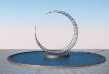 該雕塑為大型不銹鋼創意景觀,呈環形嵌套造型,鏤空處嵌藍燈如星河,環下瀑布與噴泉相映。作為公園雕塑,它以靈動設計點亮空間,是藝術與功能兼具的創意地標。